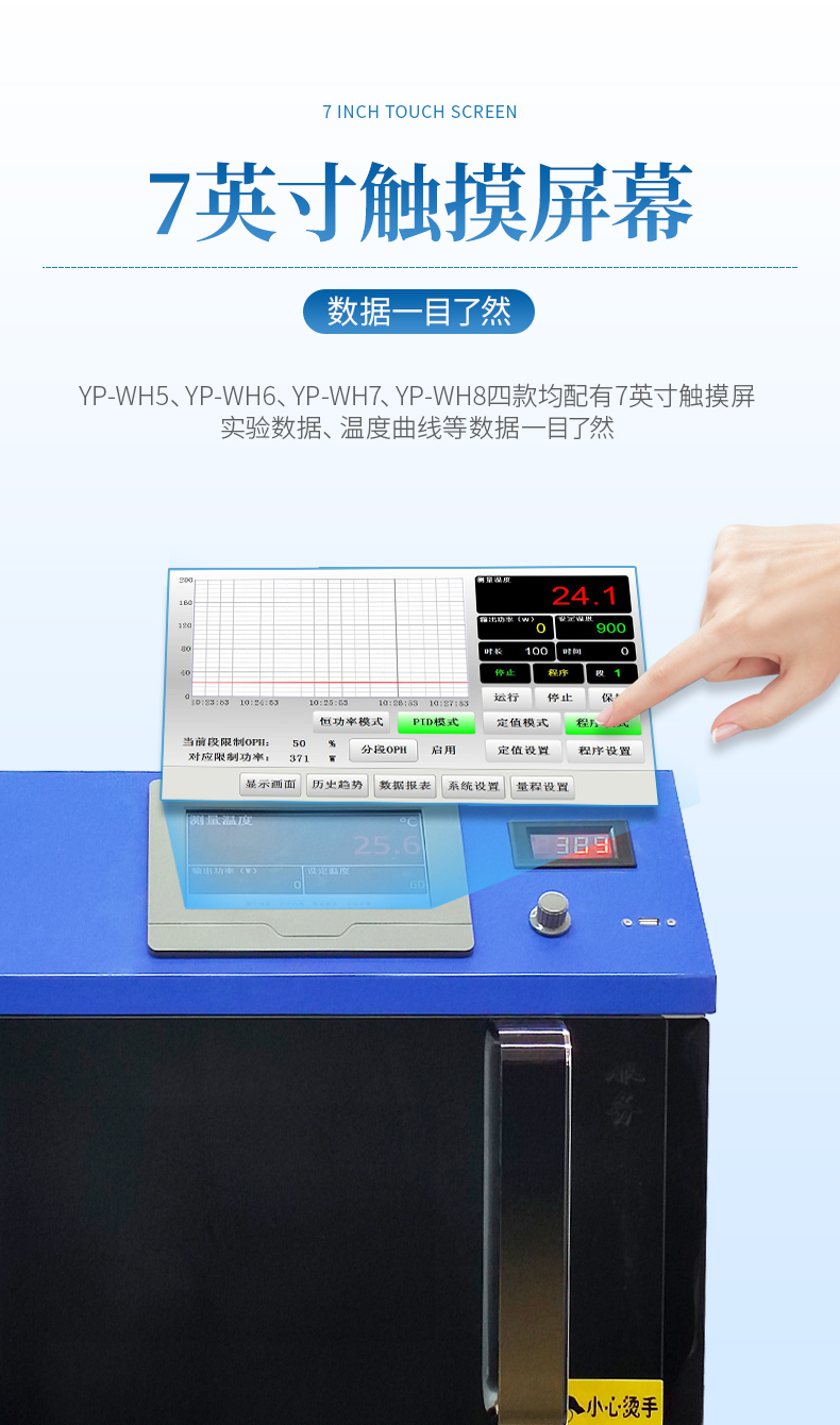 采用最新變頻技術(shù),通過變頻器將50Hz工頻轉(zhuǎn)換為10000~30000Hz可變頻率,取代了傳統(tǒng)微波反應(yīng)器使用的高壓變壓器,完美解決了傳統(tǒng)微波反應(yīng)器精確控溫時(shí),高壓變壓器受尖峰脈沖的沖擊,造成變壓器頻繁損壞的技術(shù)缺陷。MCU根據(jù)Pt100傳感器實(shí)時(shí)檢測(cè)到的溫度變化數(shù)據(jù)、反應(yīng)物質(zhì)極性、熱容變化、反應(yīng)時(shí)間等數(shù)學(xué)模型的變化條件,自適應(yīng)PID調(diào)節(jié),自動(dòng)變頻控制微波輸出功率,從而精確控溫。