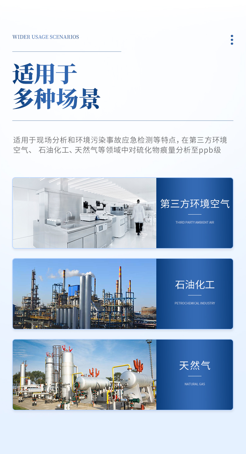 工天然氣等領(lǐng)域中對硫化物痕量分析至 ppb 級。體積小,重量輕、易攜帶。