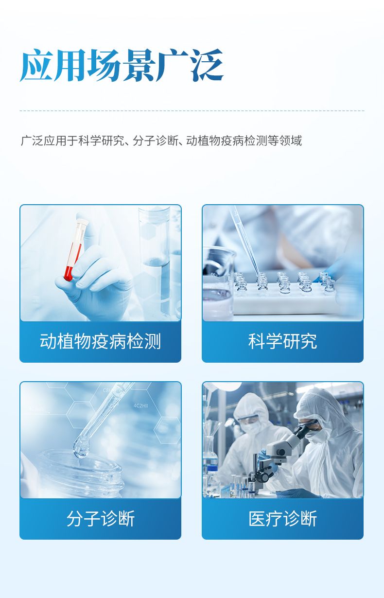 適用性廣:開放式平臺,適配通用的核酸提取和QPCR體系,無需更改試劑生產(chǎn)體系即可實現(xiàn)全自動檢測。