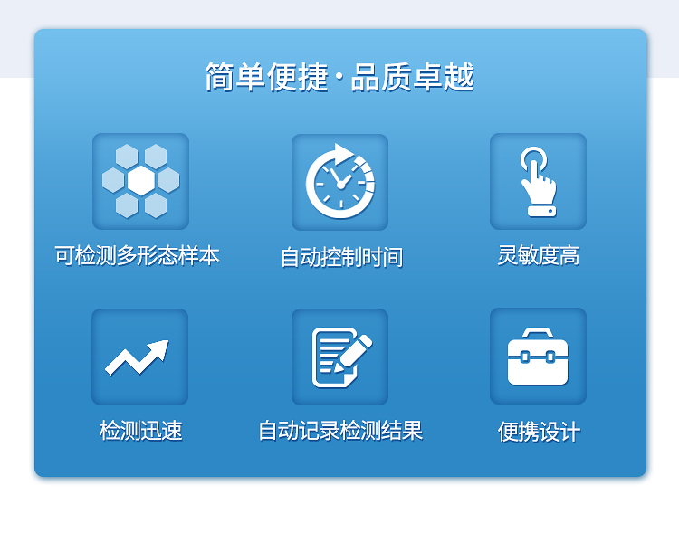 【產(chǎn)品簡介】可檢測固態(tài)、液態(tài)、表面、膏狀、漿狀樣本,操作步驟簡單,靈敏度高