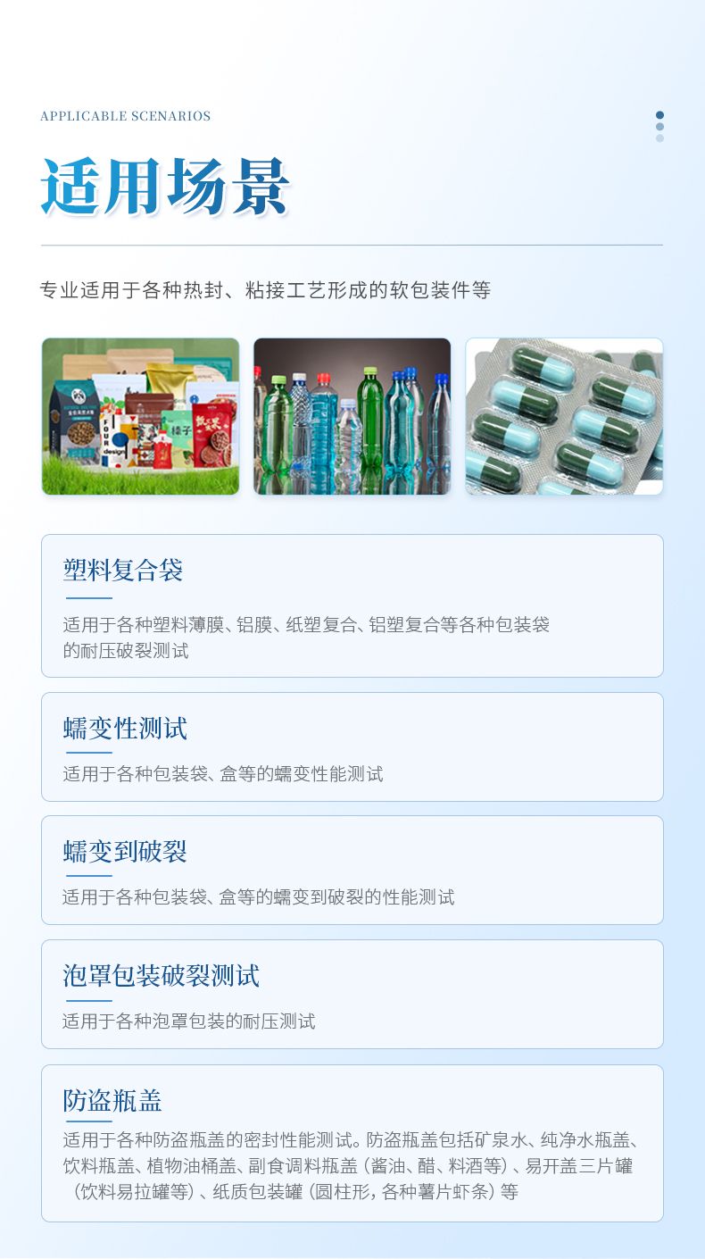蠕變性測(cè)試適用于各種包裝袋、盒等的蠕變性能測(cè)試