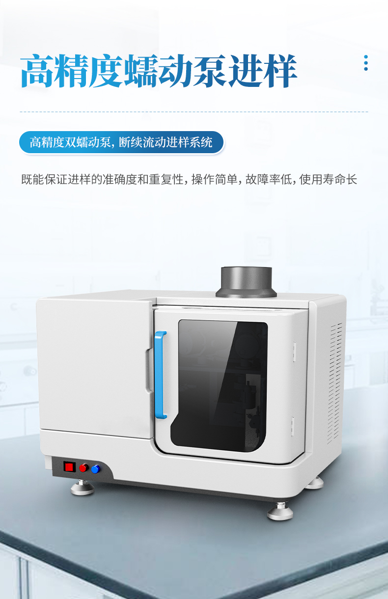 采用高精度雙蠕動(dòng)泵斷續(xù)流動(dòng)進(jìn)樣系統(tǒng),既能保證進(jìn)樣的準(zhǔn)確度和重復(fù)性,操作簡(jiǎn)單,故障率低,使用壽命長(zhǎng)。