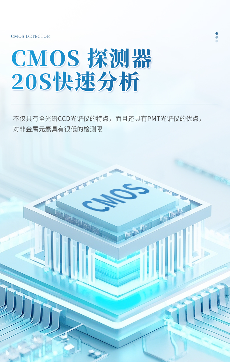 直讀光譜使用日本Hamamatsu公司最先進(jìn)的CMOS信號采集元件,每個CMOS可以分別設(shè)置火花的數(shù)量。它采用真空光室設(shè)計(jì)和全數(shù)字激發(fā)光源。該CMOS光譜儀不僅具有全光譜CCD光譜儀的特點(diǎn),而且還具有PMT光譜儀的優(yōu)點(diǎn),對非金屬元素具有很低的檢測限。整機(jī)的設(shè)計(jì)合理。它還具有操作簡便,測試精度高,長期穩(wěn)定等優(yōu)點(diǎn)。