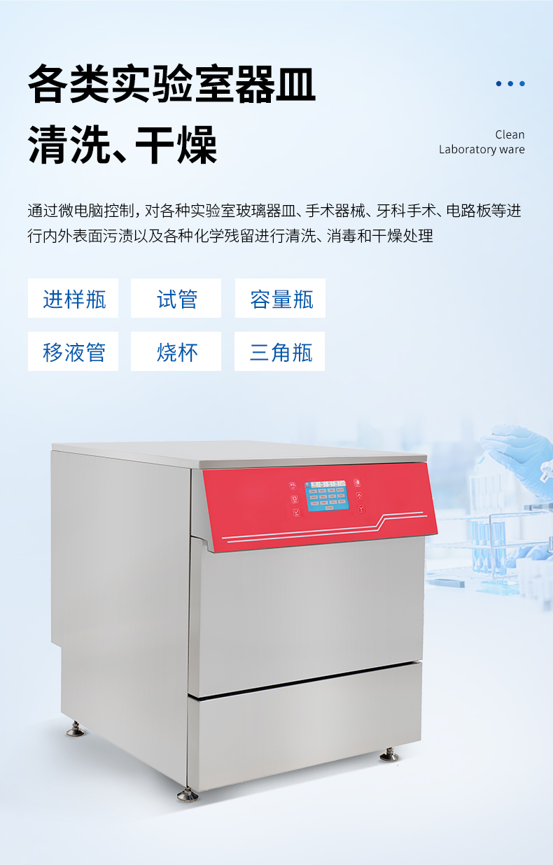 實驗室洗瓶機又叫全自動器皿清洗機,可用于清洗實驗室玻璃器皿、手術(shù)器械、牙科手術(shù)、電路板等內(nèi)外表面污漬以及各種化學(xué)殘留、消毒和干燥處理。使用玻璃器皿清洗機可以防止有毒物質(zhì)或破損器皿對工作人員的感染和傷害,降低工作危險,同時也大大的提高了工作效率。