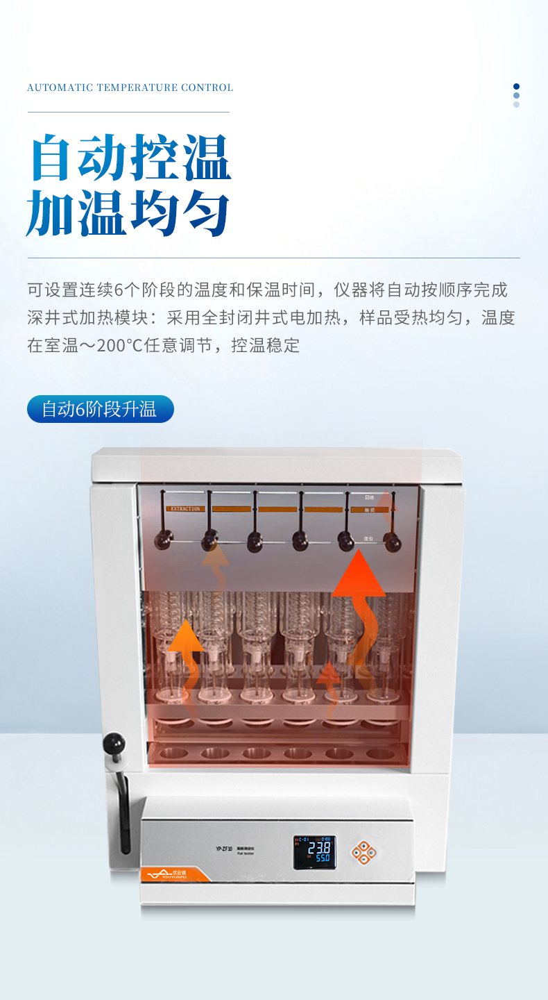 3.★自動6階段升溫:可設置連續(xù)6個階段的溫度和保溫時間,儀器將自動按順序完成, 操作簡單方便;