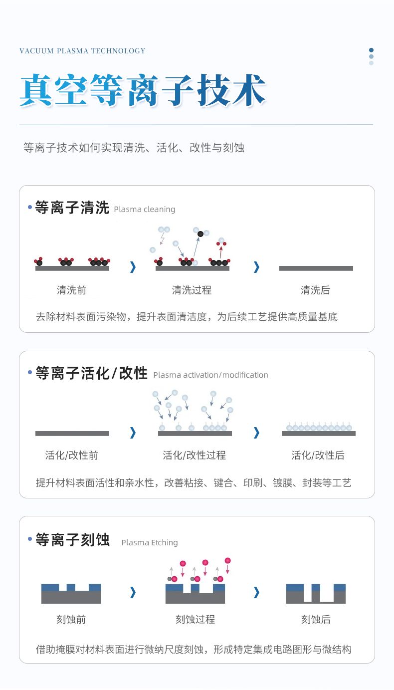 對氣體施加足夠的能量使之離化便成為等離子狀態(tài)。等離子體的"活性"組分包括:離子、電子、活性基團、激發(fā)態(tài)的核素(亞穩(wěn)態(tài))、光子等。等離子體表面處理儀就是通過利用這些活性組分的性質(zhì)來處理樣品表面,從而實現(xiàn)清潔、改性、